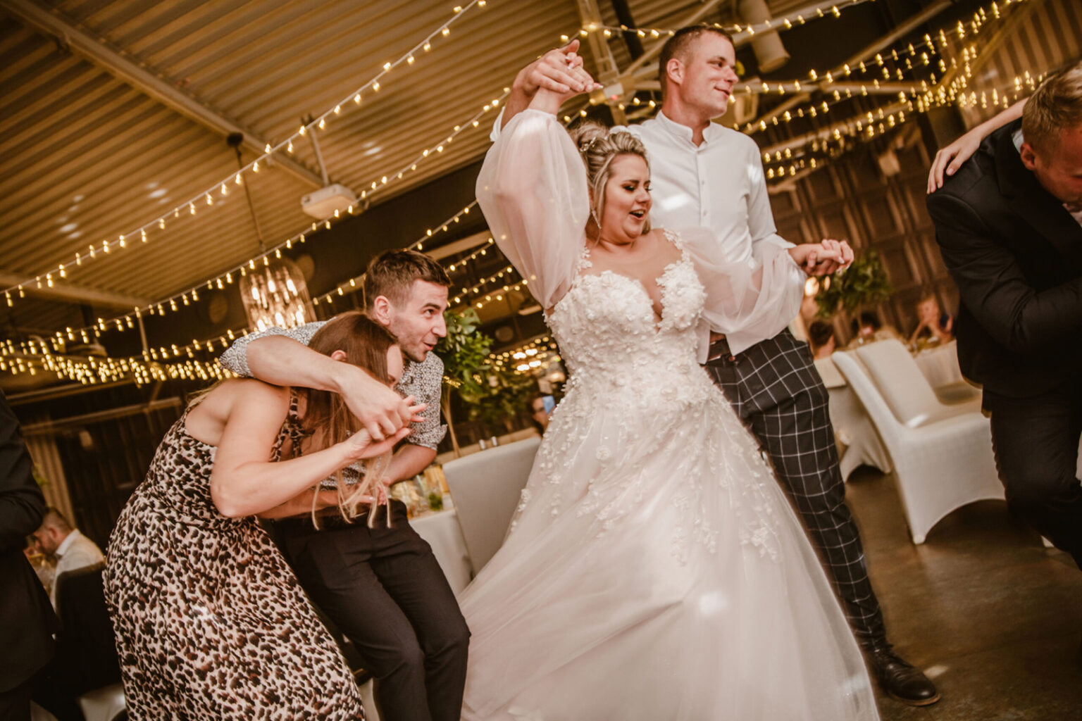 Dlatego prowadzimy Was za rękę gdy jest to potrzebne i puszczamy, gdy jesteśmy pewni, że sami świetnie się bawicie w swoim towarzystwie. Ma to także odzwierciedlenie w prowadzonych zabawach weselnych, gdyż: