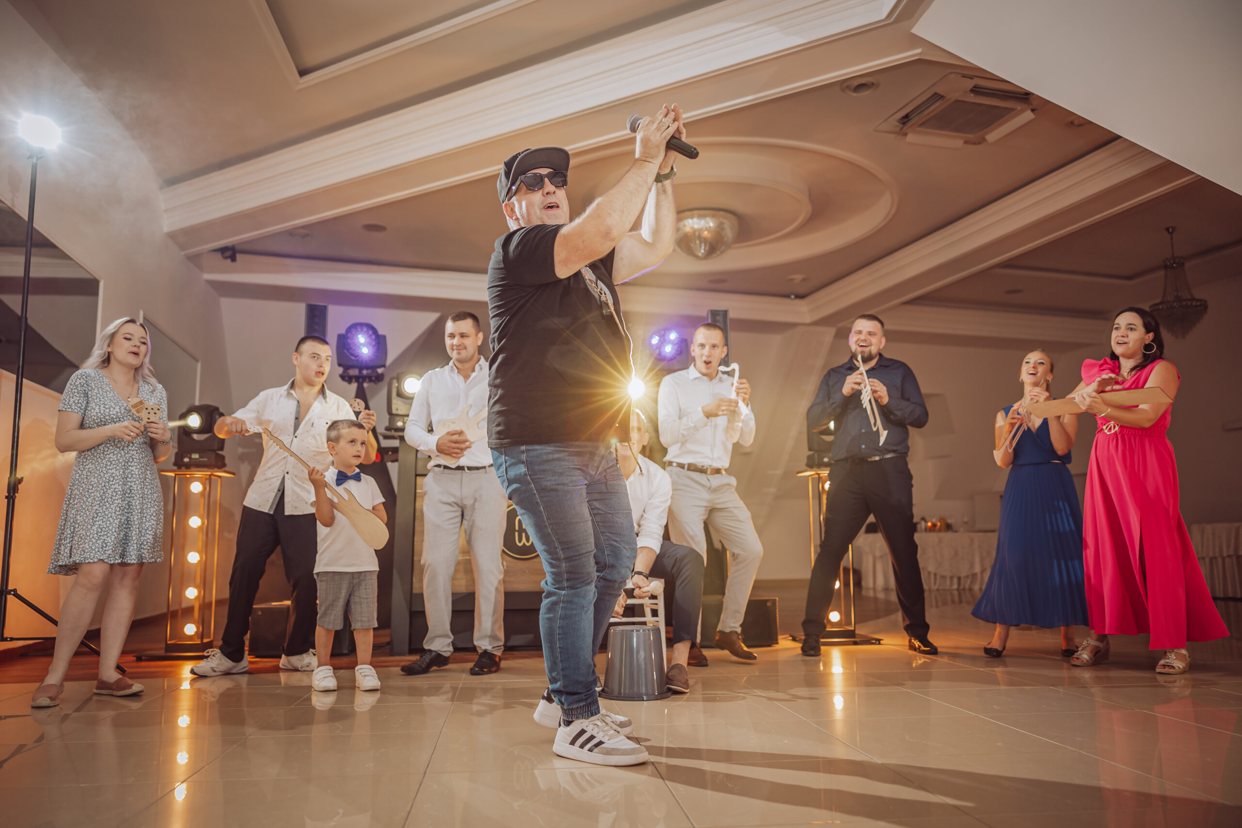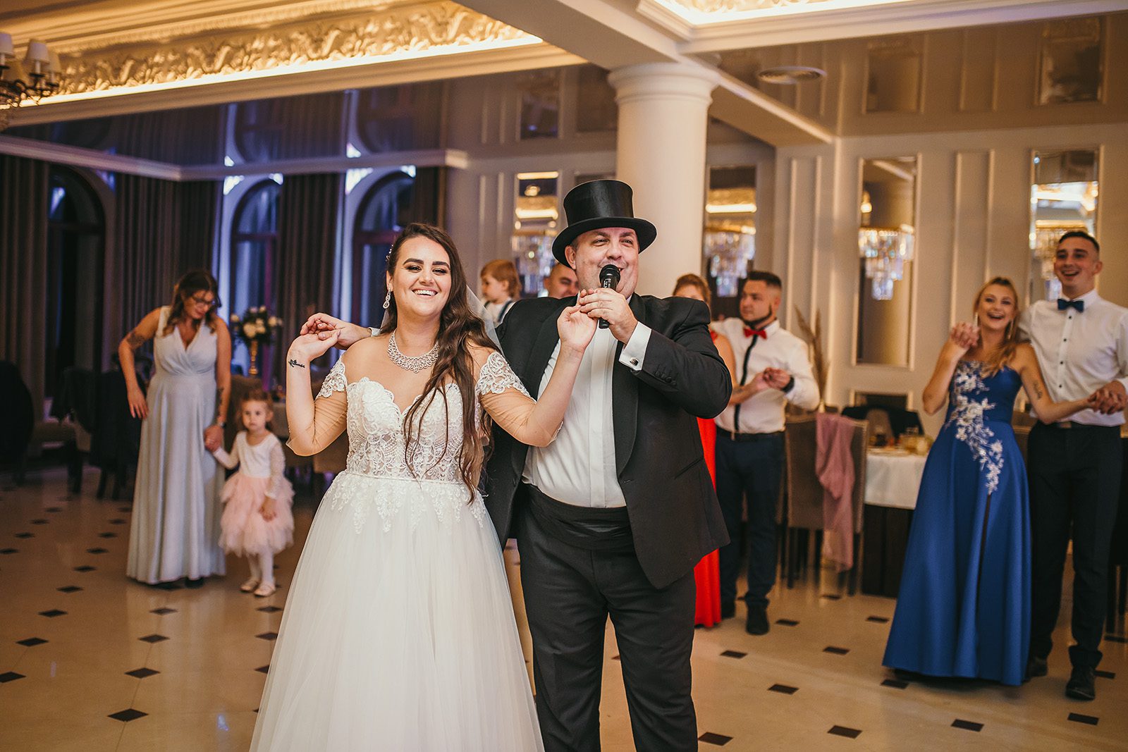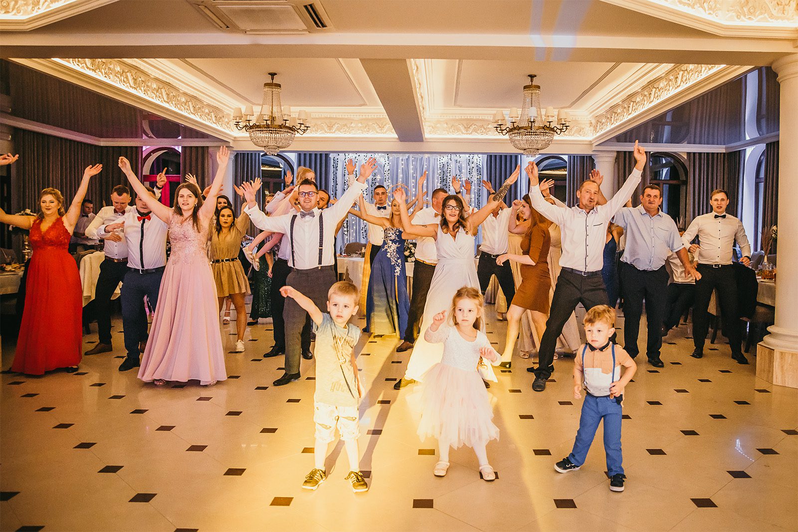 Jeśli chodzi o Zabawy Weselne to jedni goście nie mogą się ich doczekać a inni wręcz uciekają na samą myśl, że będą musieli w nich uczestniczyć. Skąd tak dwa skrajne zachowania? Mówiąc w skrócie – Wasi goście na niejednym weselu już byli i niejedną zabawę zobaczyli. I bynajmniej nie są to zabawy, które chcieliby oglądać a już z pewnością brać w nich udział. Mając na uwadze komfort Was – Młodej Pary i gości weselnych, gwarantuję, że prowadzę takie zabawy w których sam chętnie bym wziął udział a w każdej z zaproponowanej przeze mnie zabawie, mogą brać udział zarówno dzieci jak i dorośli. Przede wszystkim stawiam na zabawy w których może brać udział dowolna ilość gości. Mam na myśli takie zabawy jak tańce i zabawy integracyjne.